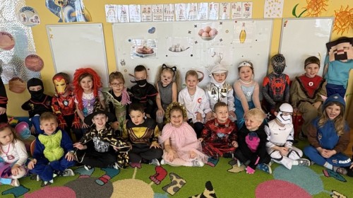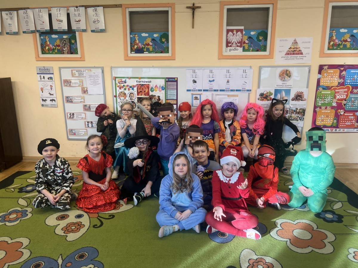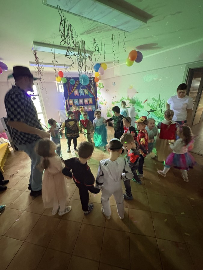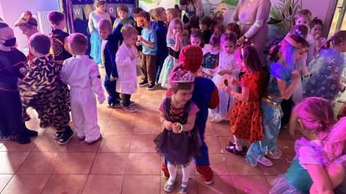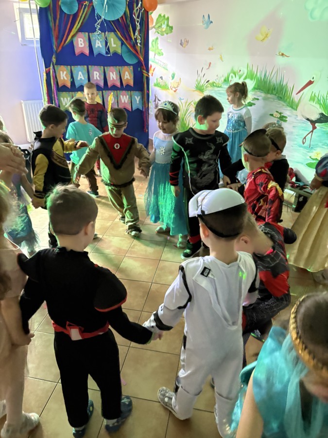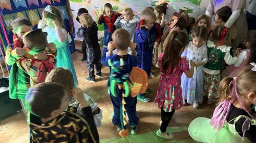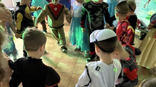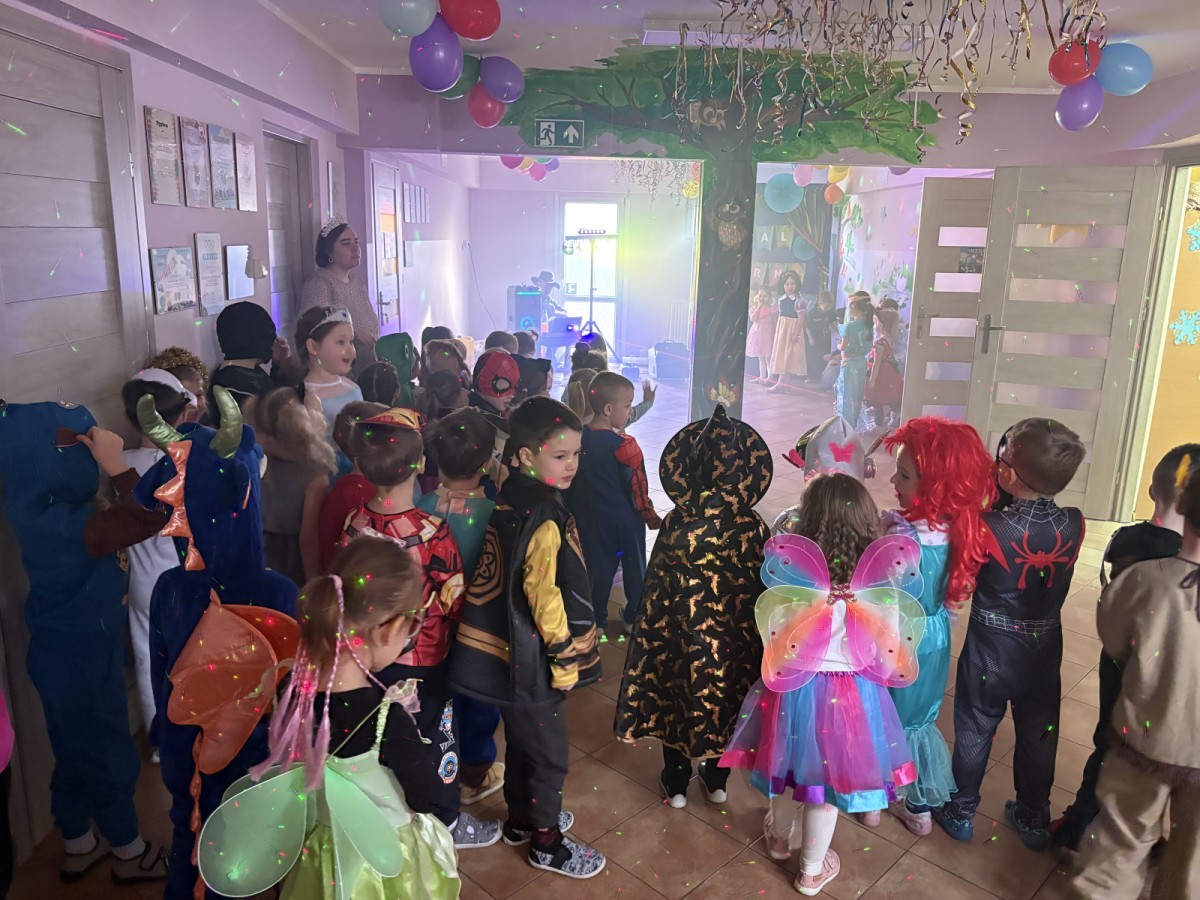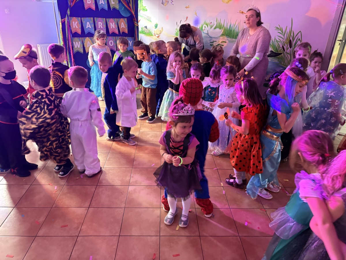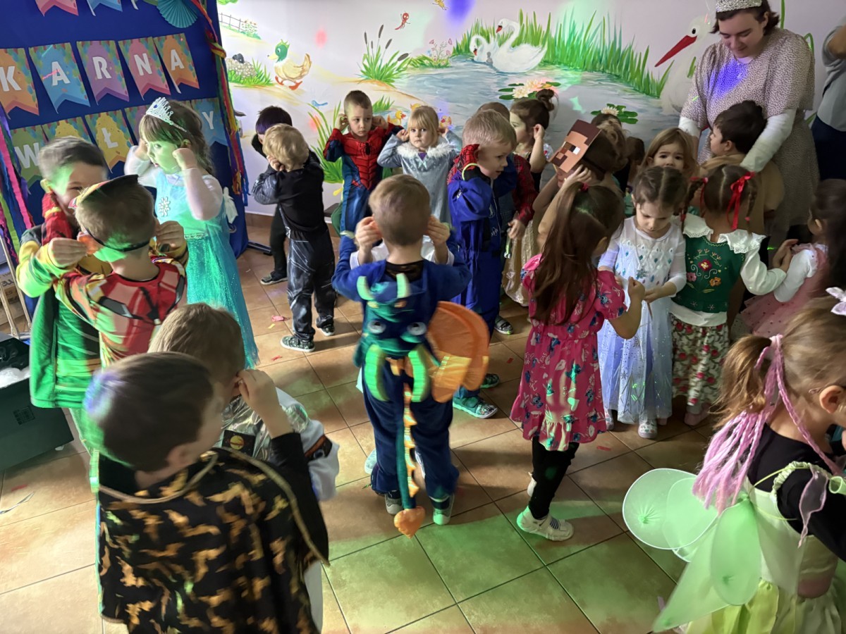Bal karnawałowy w naszym przedszkolu był prawdziwą eksplozją radości i kolorów! Dzieci zachwyciły wszystkich swoimi super pomysłowymi przebraniami – na parkiecie można było spotkać księżniczki, superbohaterów, zwierzątka i bajkowe postacie. Każdy strój był wyjątkowy i wywoływał uśmiech na twarzach zarówno dzieci, jak i dorosłych.