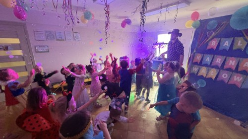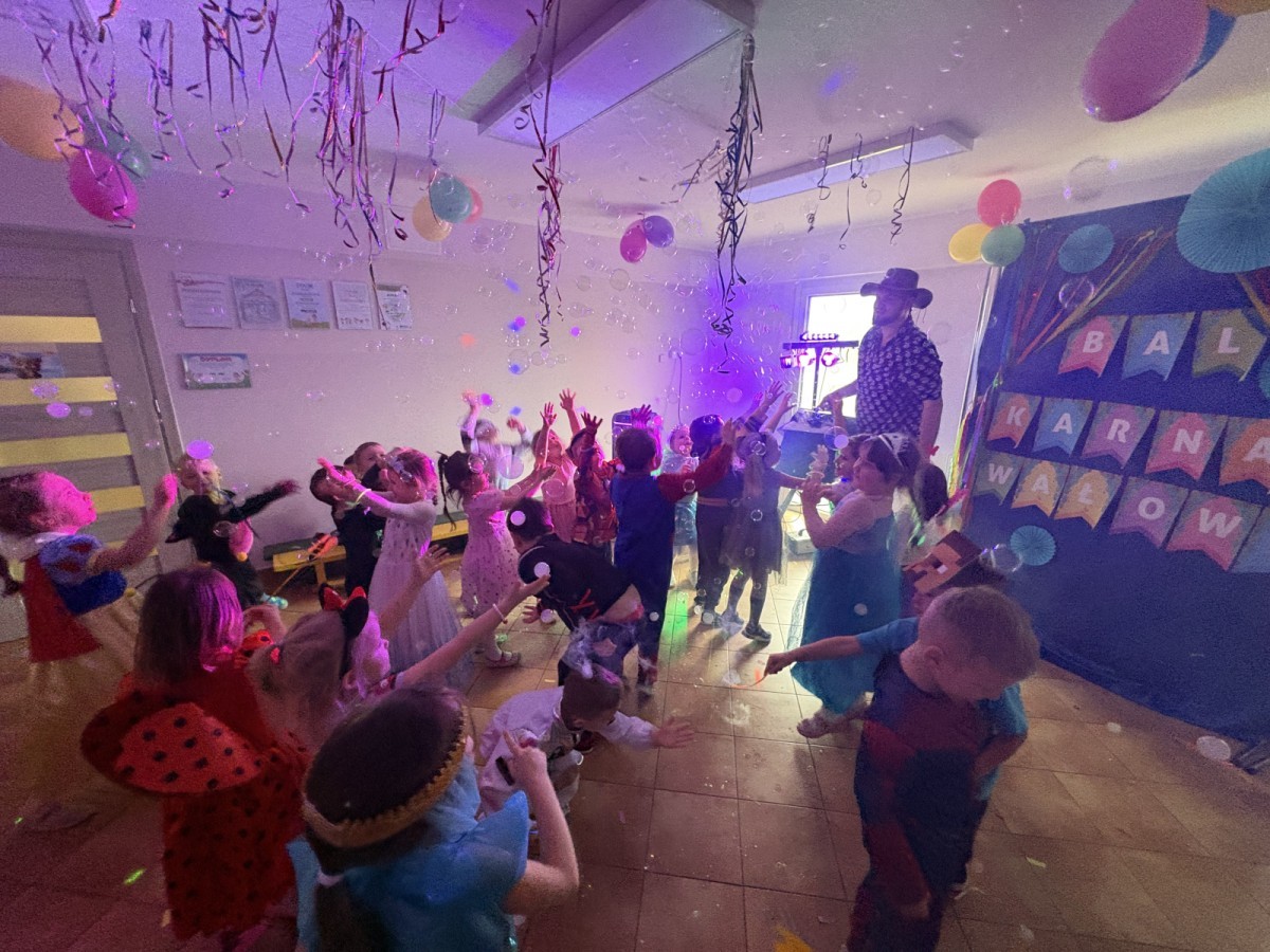 Podczas balu nie brakowało tańców i świetnej zabawy. Dzieci z ogromnym entuzjazmem brały udział we wszystkich atrakcjach, a energia nie opuszczała ich ani na chwilę. Ogromną rolę odegrał prowadzący, który świetnie poradził sobie z prowadzeniem zabawy, angażując dzieci do wspólnych zabaw i animacji.