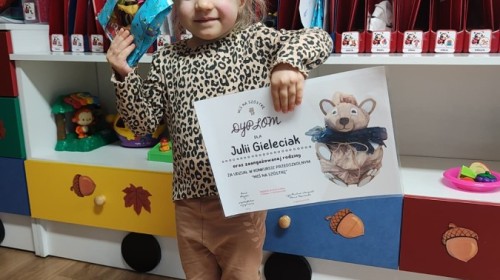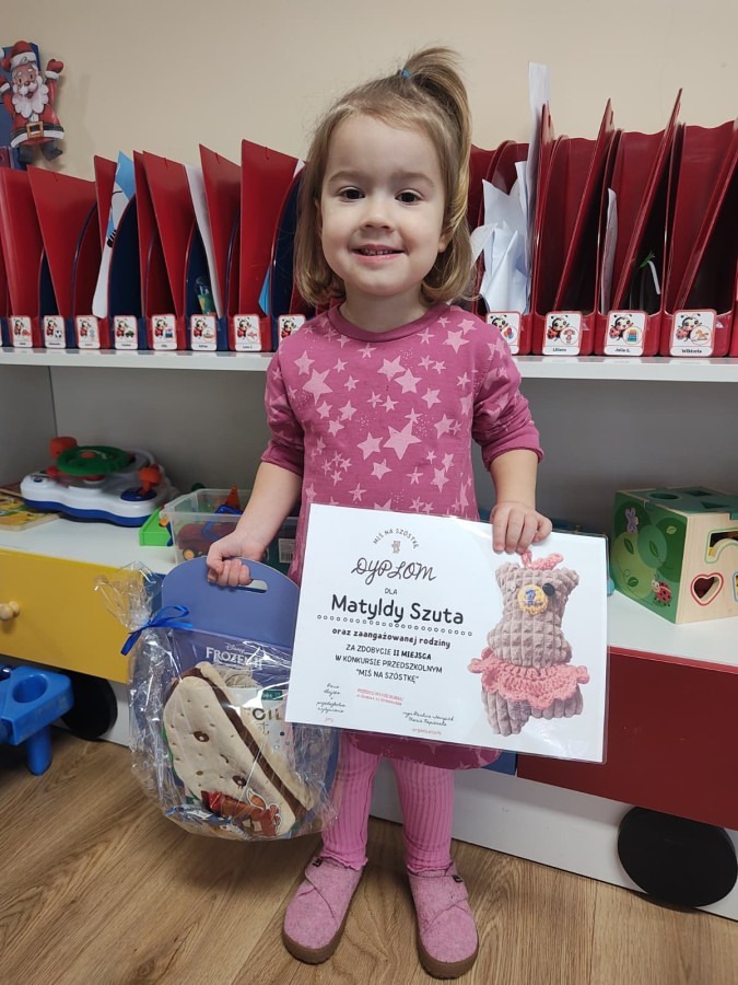 Czekały nas także wyniki konkursu, który został zorganizowany w naszej placówce z okazji tego święta. 28 dzieci, wraz z rodzicami, przygotowało cudne maskotki, które mogłyby reprezentować Przedszkole nr 6. Jury, składające się z Pań dbających o nasze żołądki, wyłoniło zwycięzców. Postanowiło także wyróżnić 4 inne misie, oraz nagrodzić drobnymi upominkami każdego przedszkolaka biorącego udział, co było możliwe dzięki finansowemu wsparciu z Rady Rodziców. Wszystkie pluszaki prezentowały się znakomicie i widać wspólny, rodzinny czas i pomysłowość, włożone w ich przygotowanie.