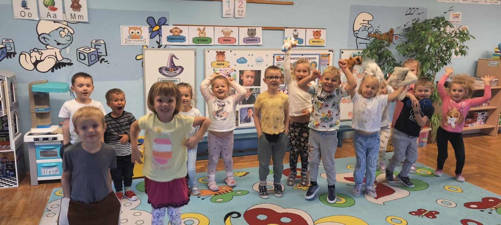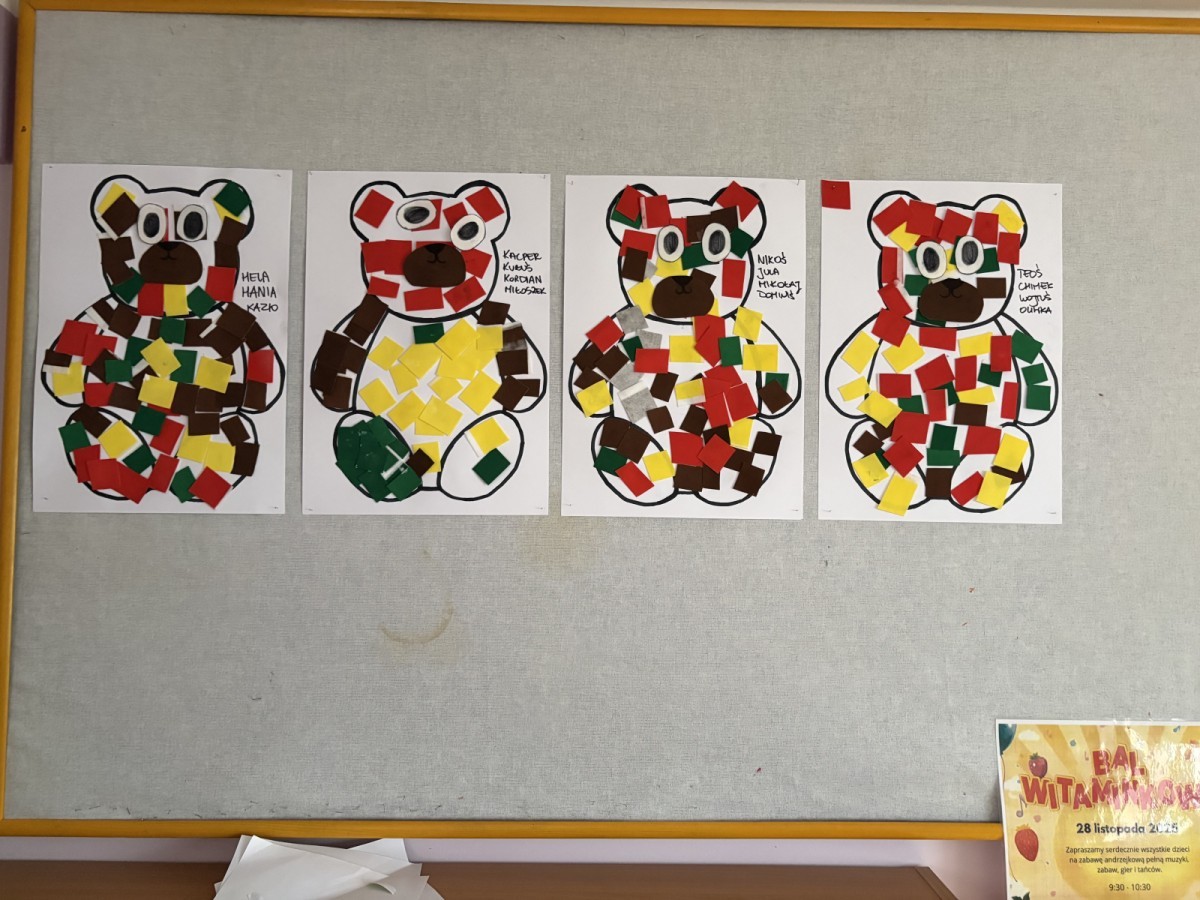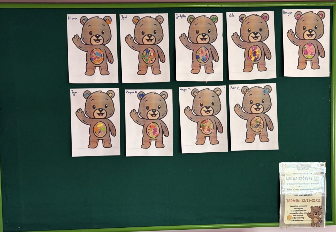 We wtorek, 25.11 obchodziliśmy w naszym przedszkolu Dzień Pluszowego Misia. Podczas wolnych obchodów odwiedził nas Miś, jak i jego pomocnik. Wzięliśmy udział w quizie na temat naszej bajkowej wiedzy dotyczących tej postaci. Podczas zabaw wcieliliśmy się w jednego z nich. Wspólne tańce i gry pokazały, jak wiele radości może dać nam taka przytulanka.