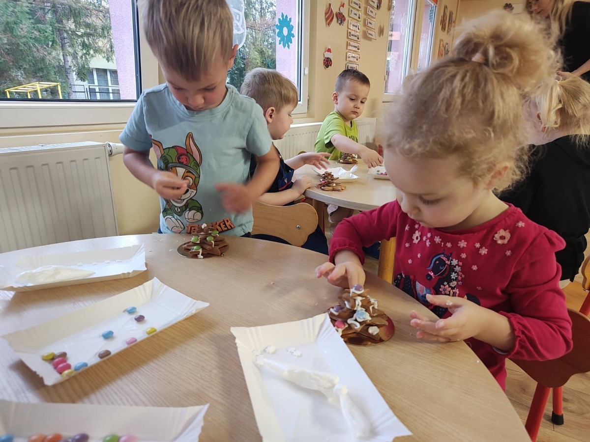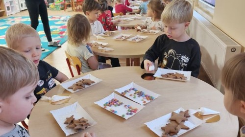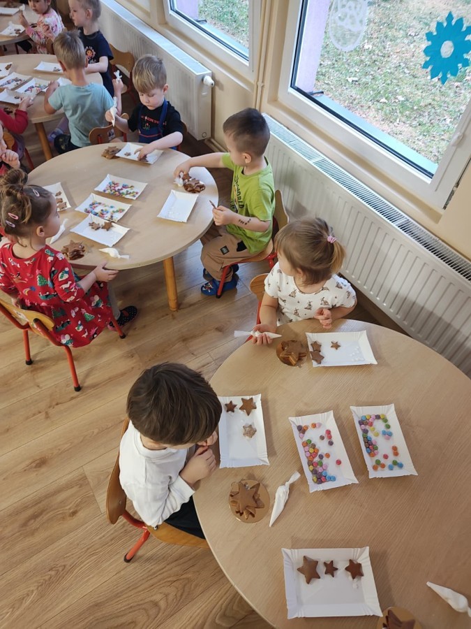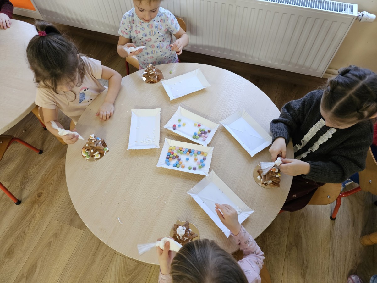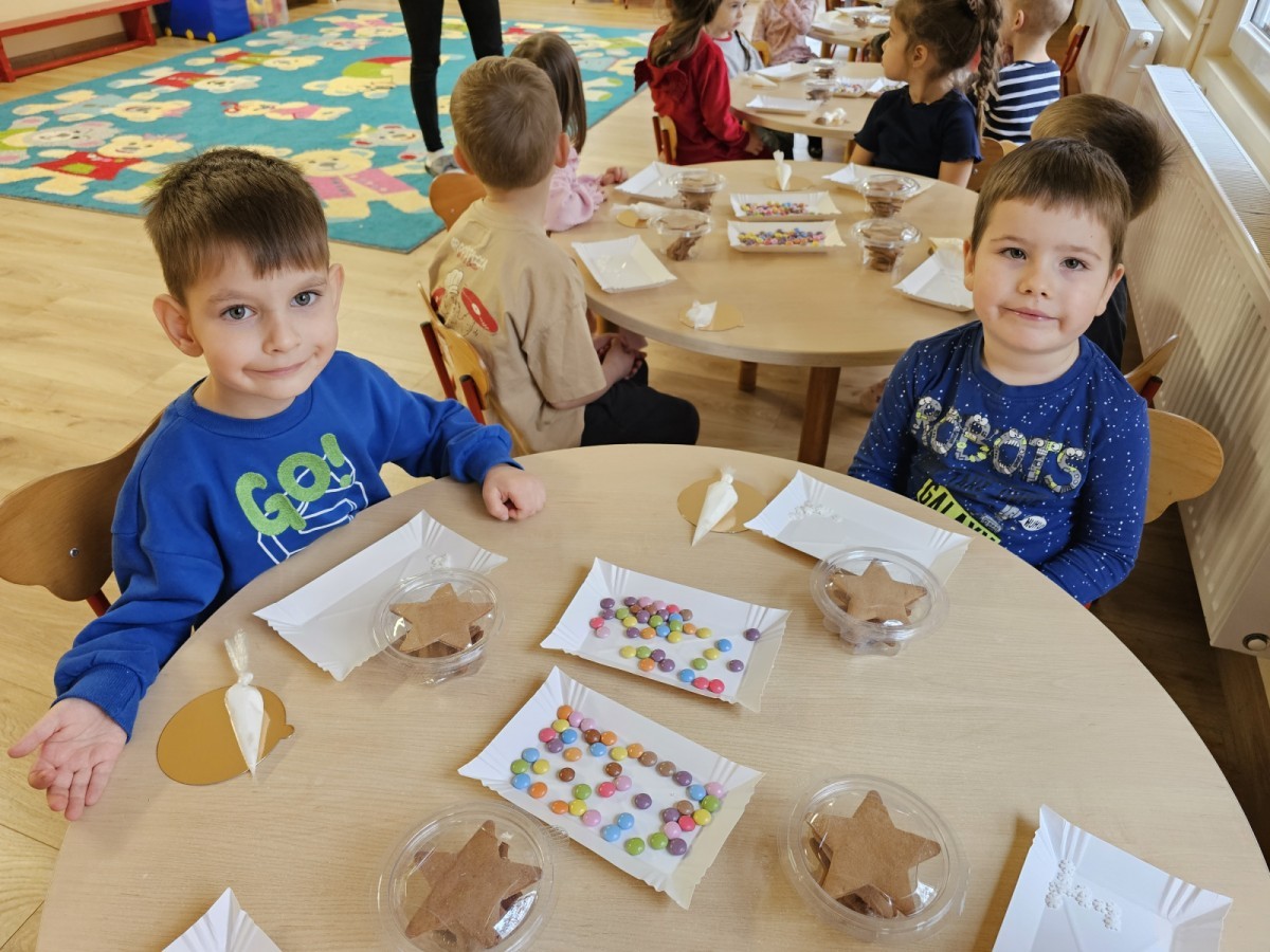 W Przedszkolu nr 6 zapanowała prawdziwie świąteczna atmosfera. Nasze przedszkolaki wzięły udział w wyjątkowych warsztatach piernikowych, podczas których tworzyły domki i choinki z aromatycznych pierniczków.