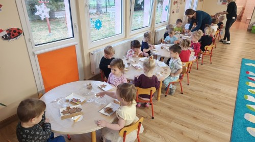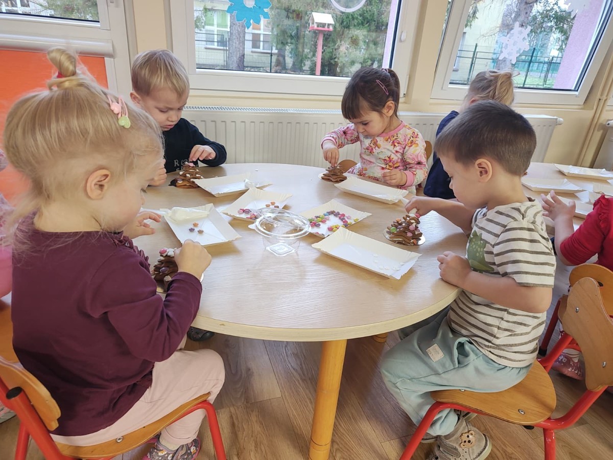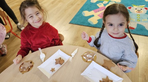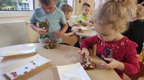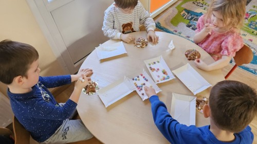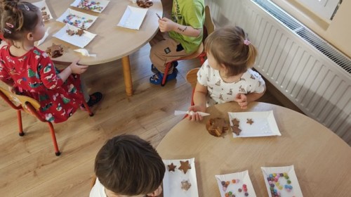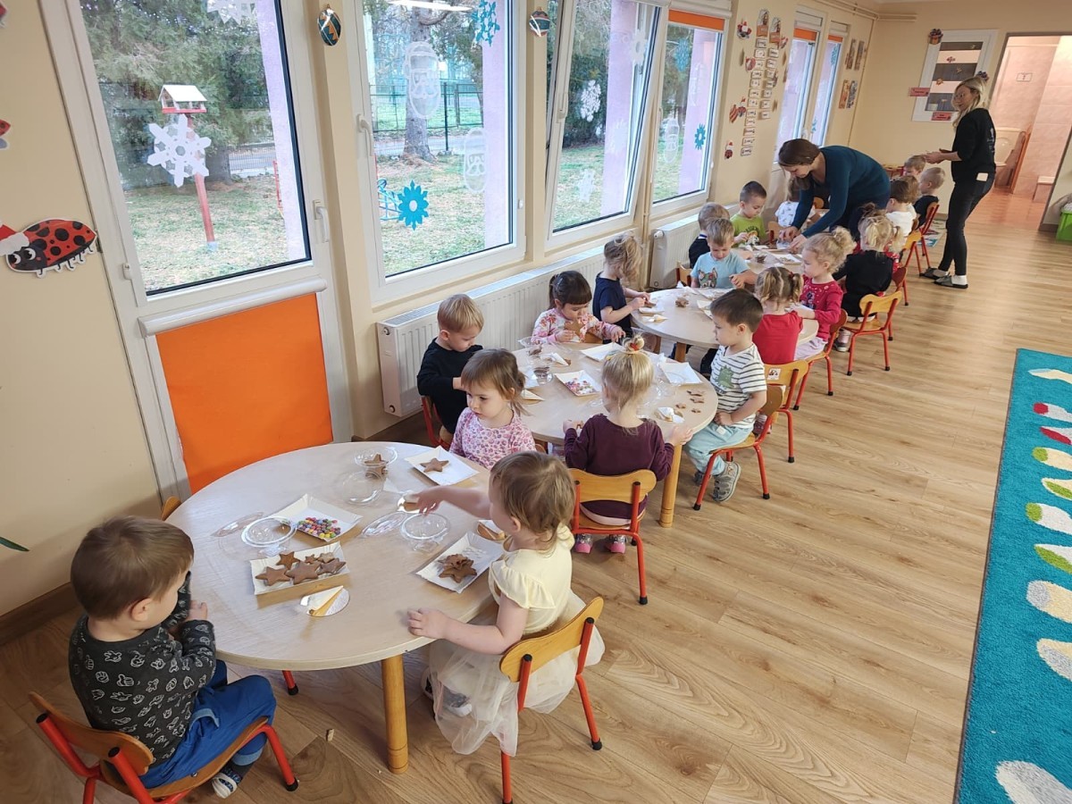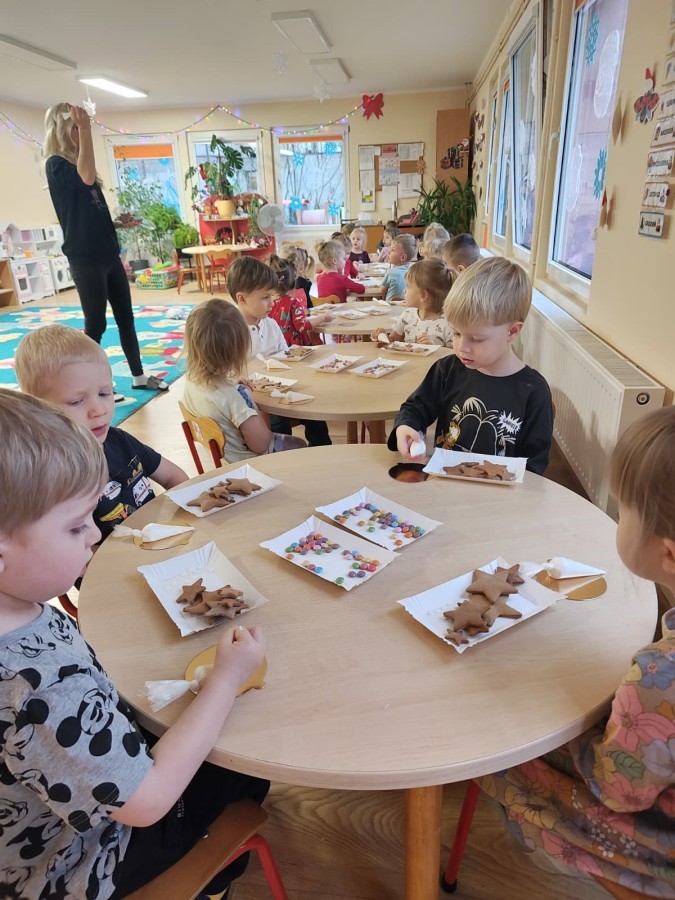 W Przedszkolu nr 6 zapanowała prawdziwie świąteczna atmosfera. Nasze przedszkolaki wzięły udział w wyjątkowych warsztatach piernikowych, podczas których tworzyły domki i choinki z aromatycznych pierniczków.